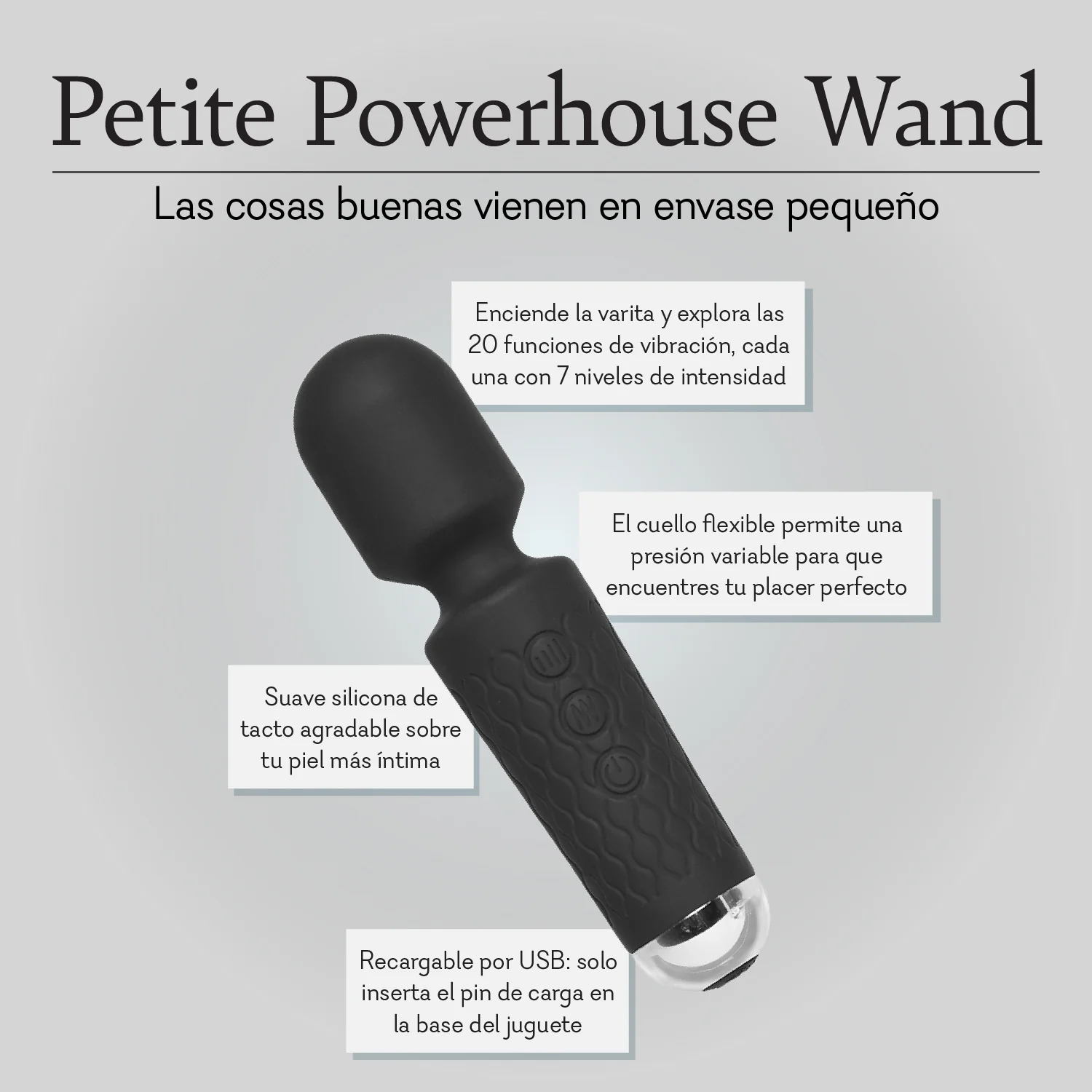 Te presentamos Petite Powerhouse, una mini varita masajeadora que, aunque compacta, tiene una potencia sorprendente. Confeccionada en silicona suave y un cuello fuerte pero flexible, te permite encontrar la presión perfecta, ya sea para aliviar músculos tensos o entregarte por completo al placer.