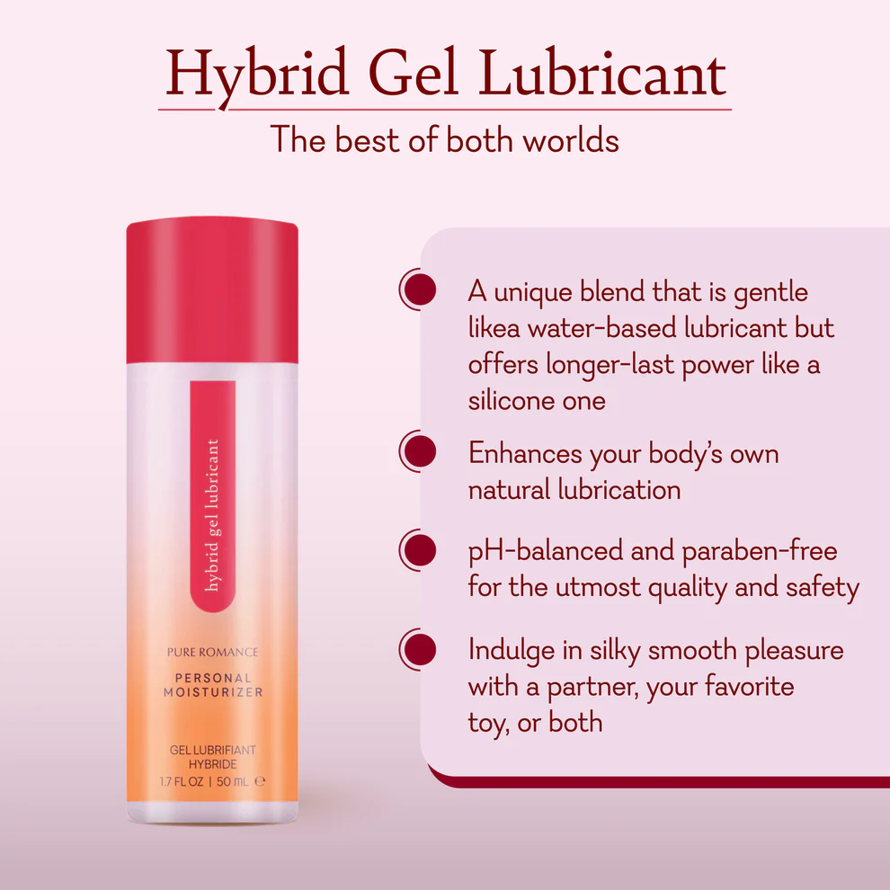 Obtenga lo mejor de ambos mundos con Hybrid Gel Lubricant. Esta mezcla única es tan suave como un lubricante a base de agua, pero más duradero como uno de silicona.